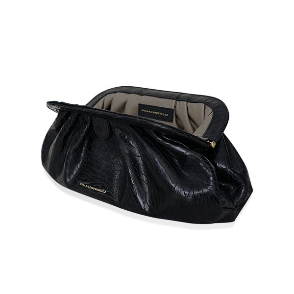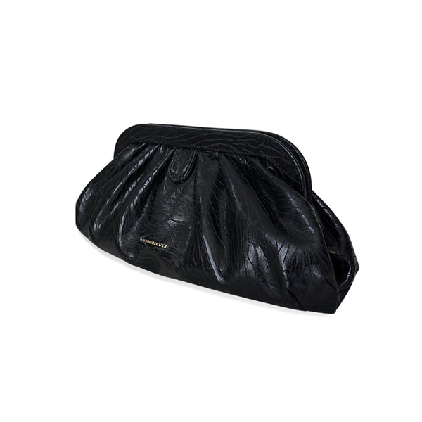 CLUTCH 100% LEATHERHANDMADEMADE IN MEXICO DETAILS -BLACK ON BLACK ZEBRA EFFECT SOFT LEATHER (COW)-DESIGNER TAG ON FRONT SIZE -WIDTH: 34 cm-HEIGHT: 10 cm-DEPTH: 12 cm