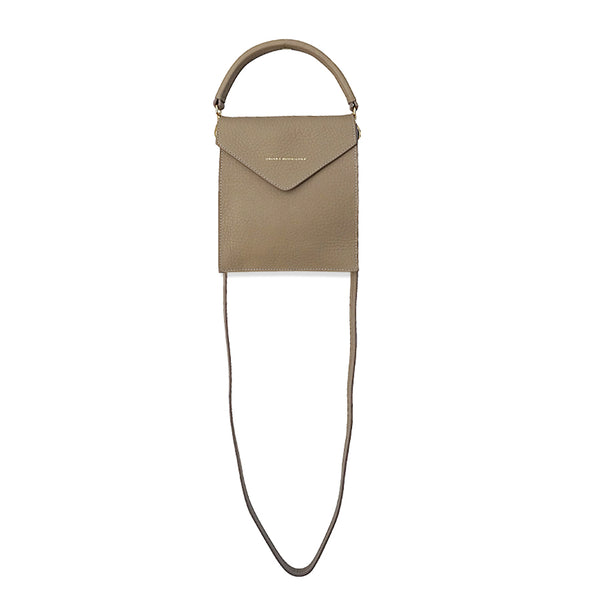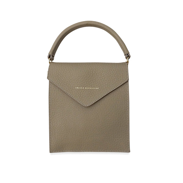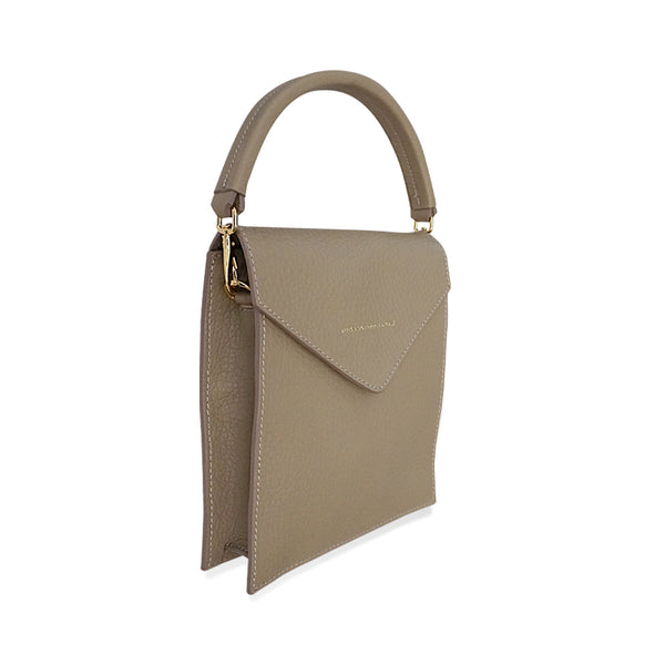 -TAUPE TEXTURED LEATHER (COW) -GOLD HARDWARE -FULLY LINED ON ECRU TWILL-MAGNETIC-FASTENING FRONT FLAP-DESIGNER TAG