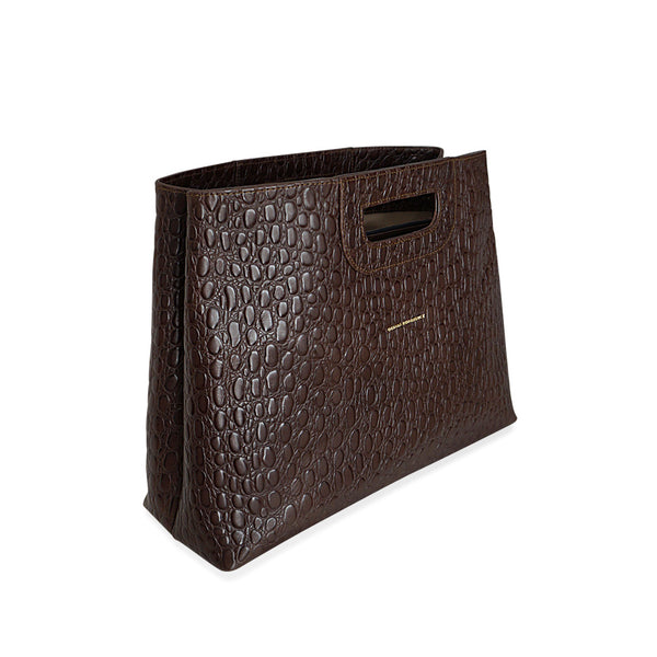 TOTE BAG 100% LEATHERHANDMADEMADE IN MEXICO DETAILS -CHOCOLATE TEXTURED LEATHER (COW)-BLACK HARDWARE-2 INTERNAL ZIP-FASTENING POCKETS-FULLY LINED ON ECRU TWILL  SIZE -WIDTH: 40 cm-HEIGHT: 30 cm-DEPTH: 14 cm