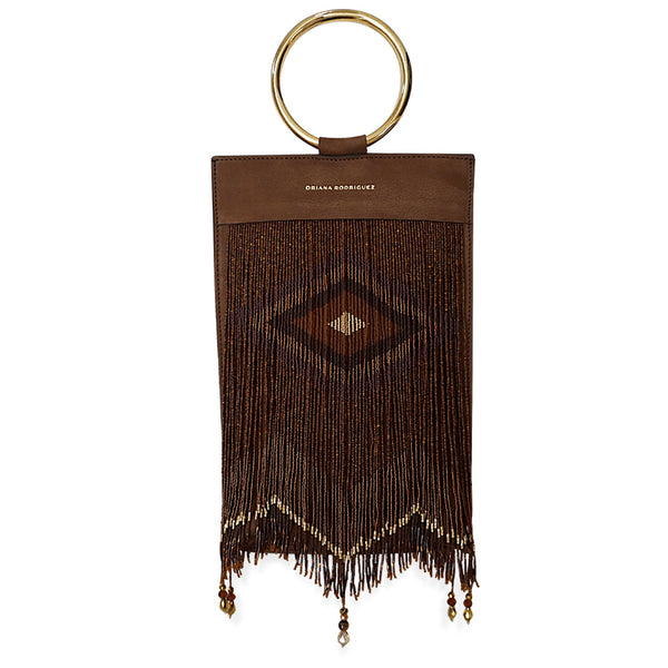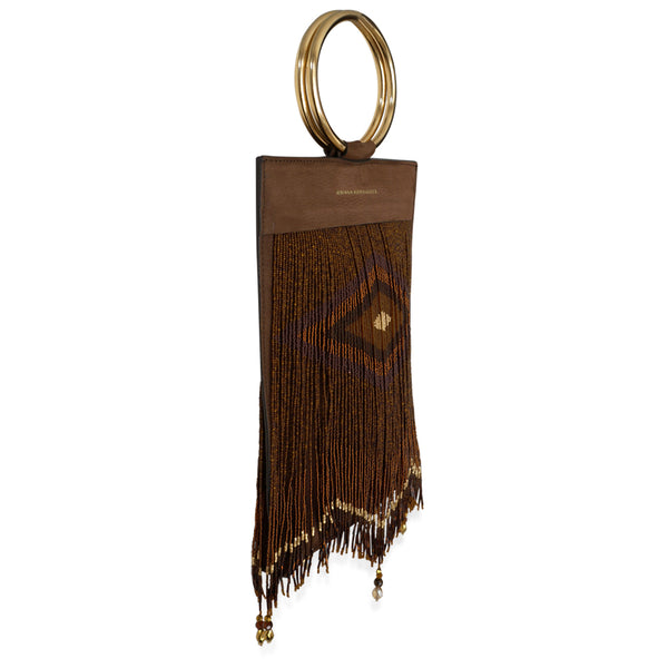 CHAQUIRA EMBELLISHED BRACELET BAG 100% LEATHER AND CHAQUIRA BEADSHANDMADEMADE IN MEXICO*AS AN ARTISAN PRODUCT, IT MAY EXIST SOME COLOR VARIATIONS IN BEADS. DETAILS -BROWN NUBUCK TEXTURED LEATHER, CHAQUIRA BEADS-GOLD HARDWARE-FULLY LINED ON ECRU TWILL-MAGNETIC-FASTENING SIZE -WIDTH: 19 cm-HEIGHT: 40 cm-DEPTH: 0.5 cm-BRACELET DIAMETER: 10...