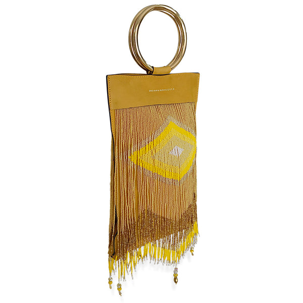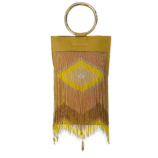CHAQUIRA EMBELLISHED BRACELET BAG 100% LEATHER AND CHAQUIRA BEADSHANDMADEMADE IN MEXICO*AS AN ARTISAN PRODUCT, IT MAY EXIST SOME COLOR VARIATIONS IN BEADS. DETAILS -MUSTARD NUBUCK TEXTURED LEATHER, CHAQUIRA BEADS-GOLD HARDWARE-FULLY LINED ON ECRU TWILL-MAGNETIC-FASTENING SIZE -WIDTH: 19 cm-HEIGHT: 40 cm-DEPTH: 0.5 cm-BRACELET DIAMETER: 10...